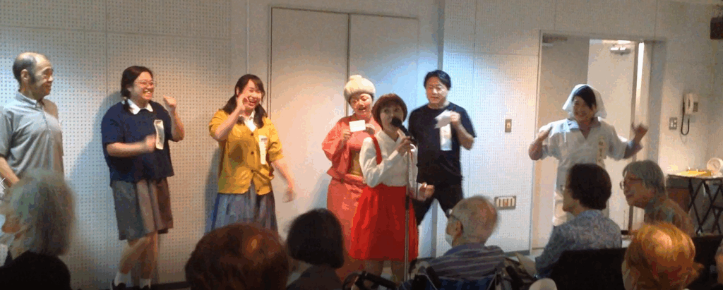 最後には入居者様がアレンジ、作詞をした「ここに幸ありアメニティー」皆さんで歌い、