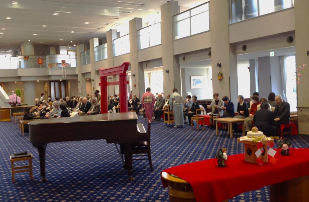 祝い酒や甘酒をご提供し、施設スタッフが作成したアメニティー神社で初詣、手作りのおみくじで