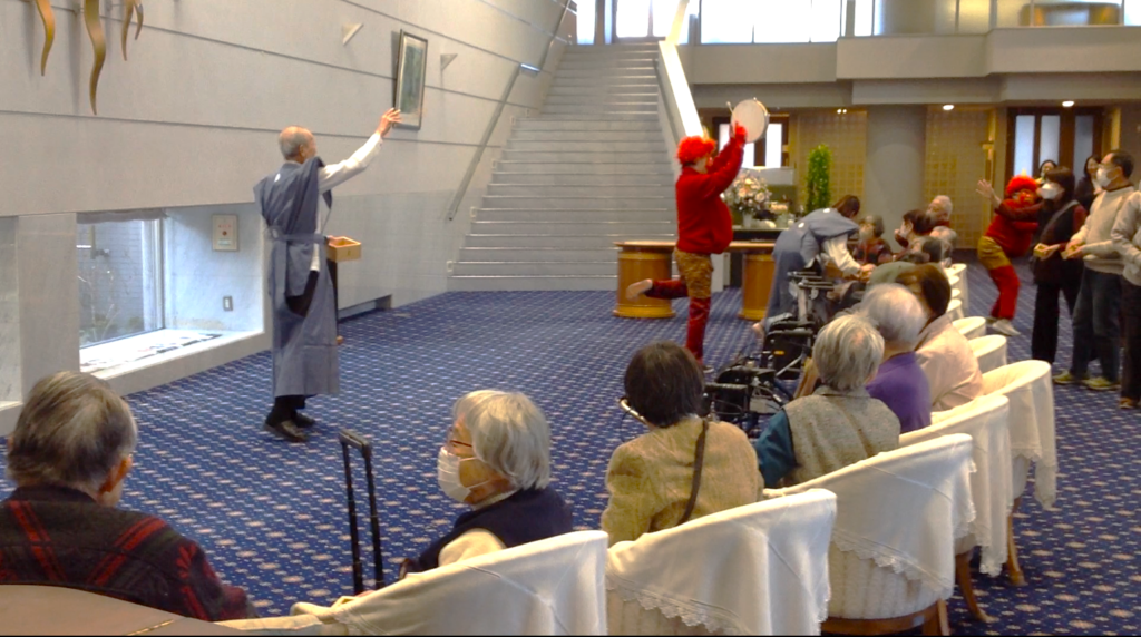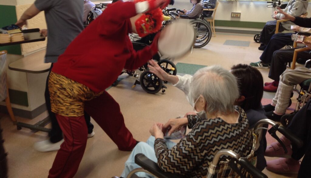 年男の入居者様と年女のスタッフに裃を着ていただき、かけ声の音頭を取っていただきました。
